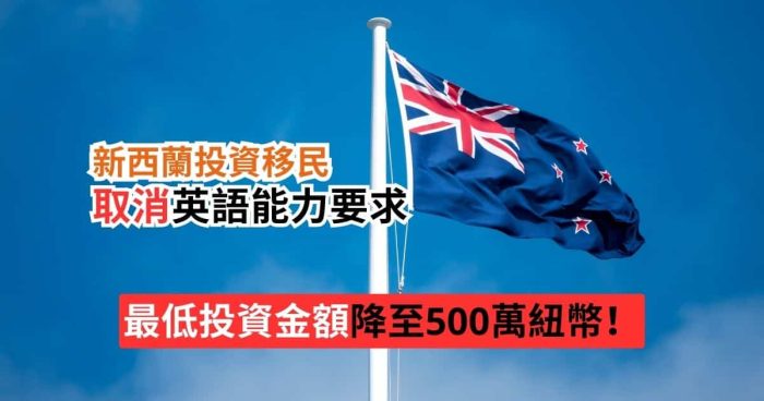 【取消英語能力要求】新西蘭投資移民新政4月實施 最低投資金額降至500萬紐幣! blog, 投資移民, 移居海外, 胡康邦移民顧問By JHM11/02/2025Leave a comment新西蘭政府將在2025年4月1日簡化其被稱為「黃金簽證」計劃,取消投資移民英語測試要求,以吸引更多富裕移民並刺…