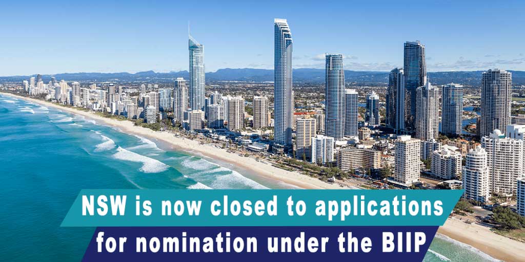 New South Wales (NSW) is now closed to applications for nomination under the Business Innovation and Investment Program (BIIP). As NSW has exhausted all quotas for the BIIP nomination, she’s unable to accept other applications until the next program year (July 2020). Queensland and South Australia’s nomination quota under the BIIP has been closed as well. For further information, please click here.