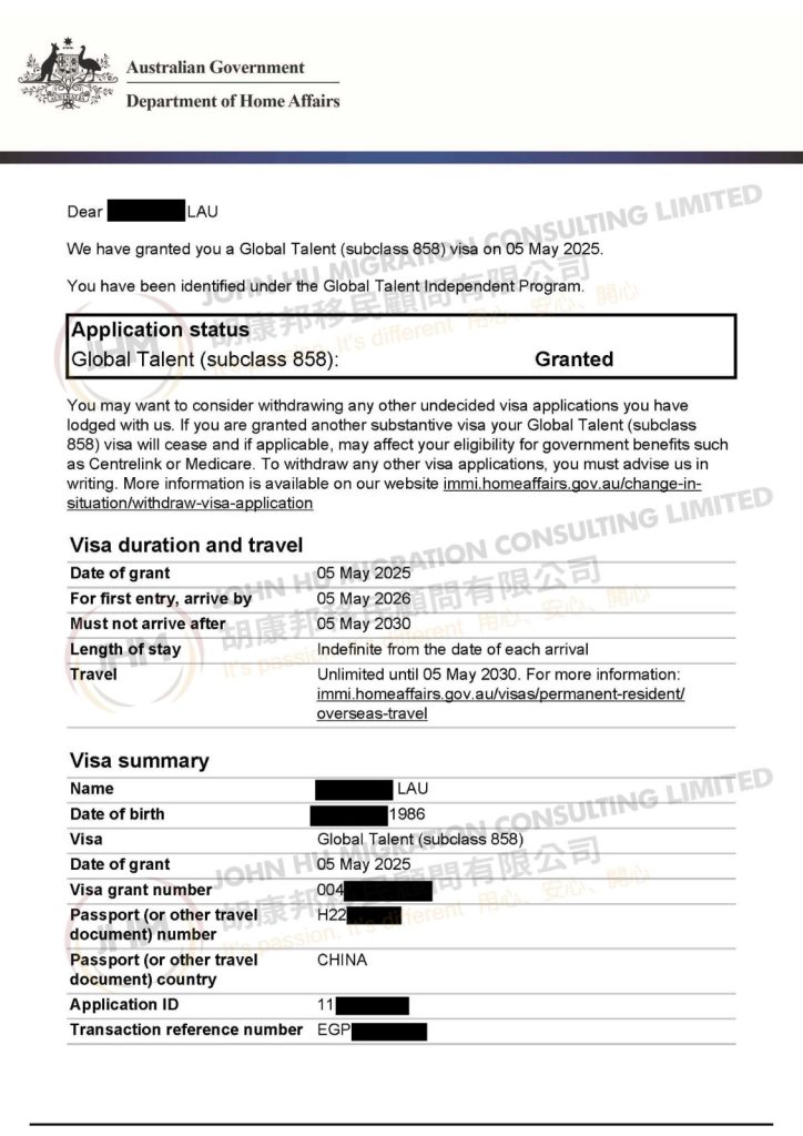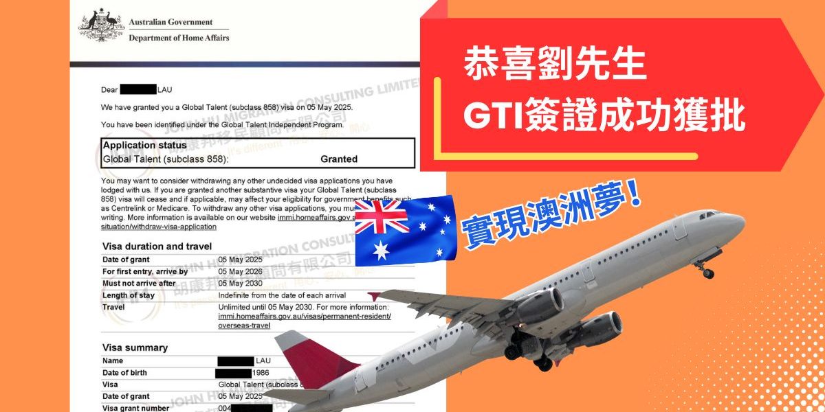 2025年5月5日: 成功獲批 澳洲GTI簽證,夢想成真!