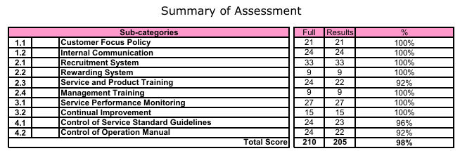 胡康邦移民顧問對服務品質的堅持並非空談,根據香港品質保證局(HKQAA)的服務品質管理審核報告,胡康邦移民在「客戶焦點政策」、「內部溝通」和「招聘培訓」等核心管理類別中均達到了 100% 的高標準。這項總達成率高達 98% 的成績證明,我們在公司內部已經建立了完善且嚴格的體系,確保每位客戶的申請都能獲得最高級別的專業對待。