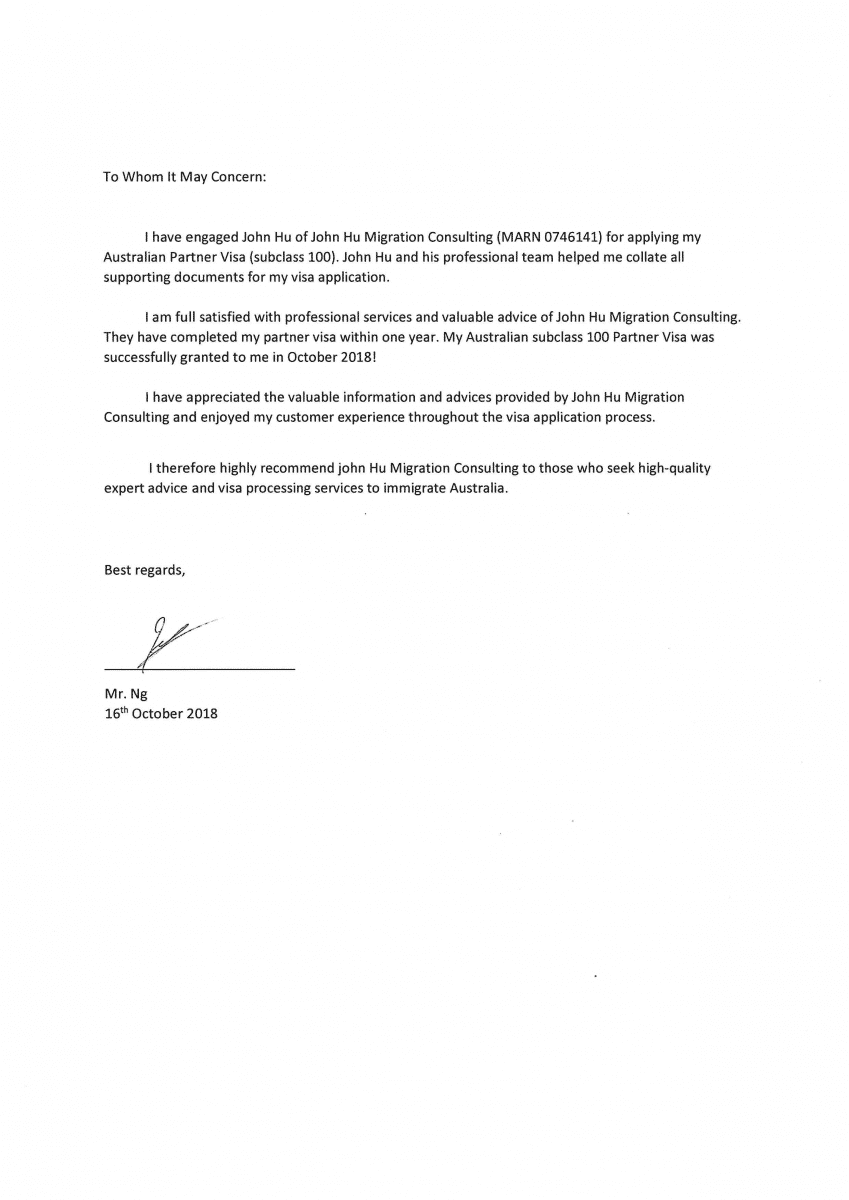 胡康邦移民顾问过往处理不少移民签证,有无数成功个案·。他非常感谢胡康邦和旗下专业团队的帮忙,协助他准备有关文件。同时,对其专业服务和宝贵意见感到满意。